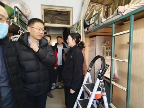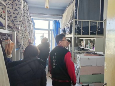 党委书记杨民、行政副院长于洪生、党委副书记兼副院长王力、学生工作办公室主任张淑艳、辅导员单葆龙、研究生秘书于晴前往南苑三、四、九公寓,北苑二、三、四公寓,文苑二公寓等全部本科生、研究生公寓开展新学期寝室安全检查工作。