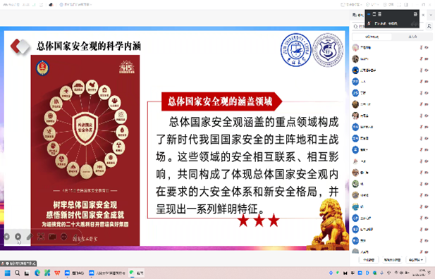 团队成员走进校园与中小学生面对面交流,走进社区张贴发放宣传普法海报,开展了多次线下主题宣讲宣传活动。同时,团队还举办了百余名观众参与的线上主题宣讲会,共同学习领会总体国家安全观的重大意义与科学内涵,以青年话语讲好国安故事,推动全民国家安全意识入脑入心。