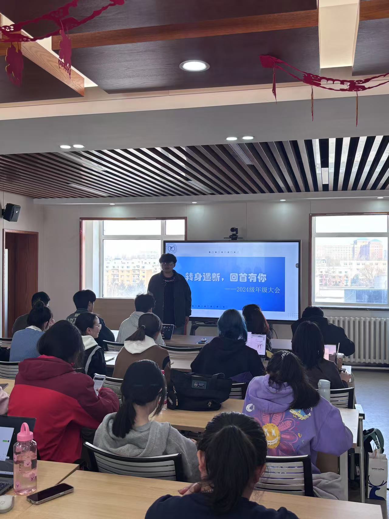 2024级本科生在吕振羽楼818迎来了转专业之后的年级大会——这是一次告别与相遇的温暖更迭。