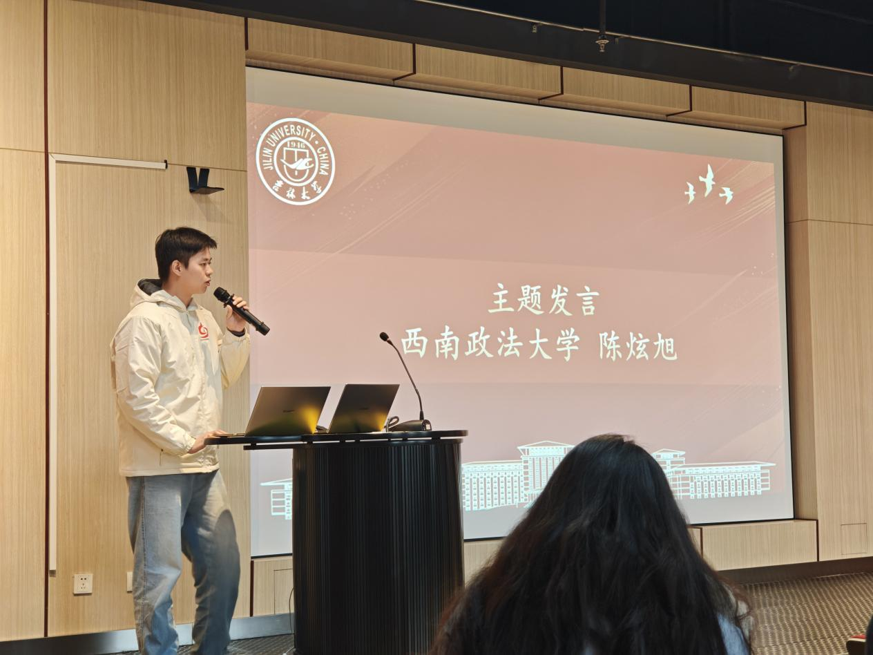 主题发言环节,来自新疆大学的金冠杰同学以“国家安全教育视域下新时代应急科普发展的多维实践进路”为题,从人民安全的视角讲述了新时代我国应急科普的要求、问题挑战及实践路径,既彰显了百年未有之大变局下应急科普的紧迫性,更展现了青年学生立足国情、脚踏实地的研究精神。