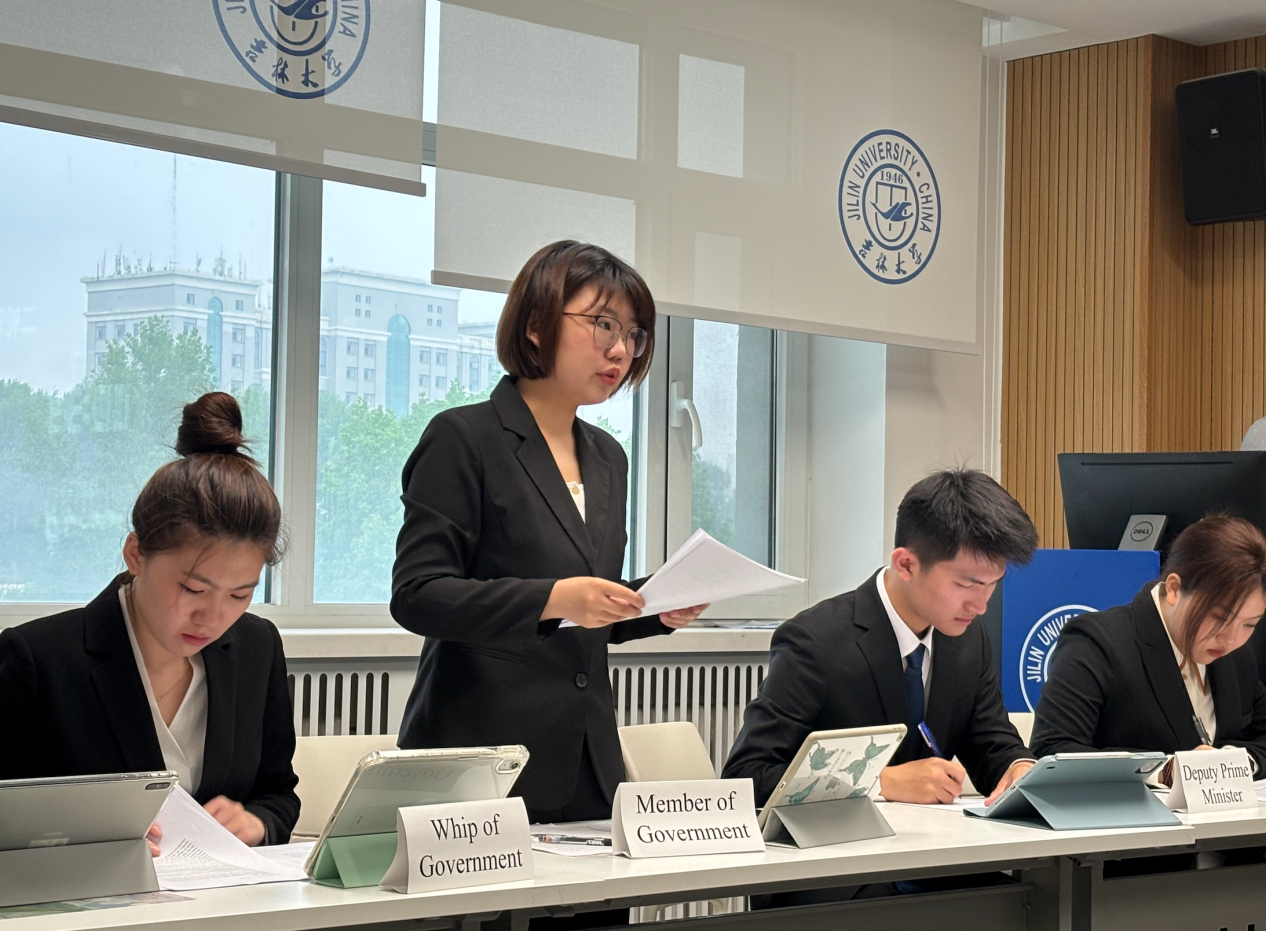 牛艺萱:这次活动让我感受到语言能力和专业素养的结合是多么重要。在英语辩论赛中,我不仅锻炼了语言表达能力,还学会了从多角度分析问题。而在模拟外交谈判中,我第一次尝试起草正式的国际文件,并参与了多方立场的协调过程。这些经历让我认识到细节和沟通在外交事务中的关键作用。更让我感动的是,团队中的每一个人都全力以赴,为共同的目标而努力。我相信,这次经历会让我终身难忘。