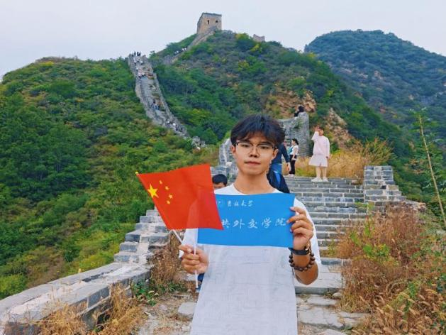 开展了“带着国旗去旅行”特色活动。鲜红的国旗与蔚蓝的院旗点缀着旅途中的风景,铺陈着外交学子对祖国的真挚祝愿。接下来,请欣赏记录着祖国壮丽与灿烂笑脸的国庆记忆。