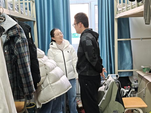 走访过程中,辅导员老师与同学们亲切交流,详细询问大家新学期返校适应情况、课程学习安排与日常生活状态,耐心倾听同学们在学习生活中遇到的困难与需求,重点关心同学们的心理健康与身体健康,叮嘱大家合理安排作息、加强体育锻炼、保持积极向上的精神面貌。同时,逐寝检查卫生状况与用电安全,引导同学们自觉遵守寝室管理规定。