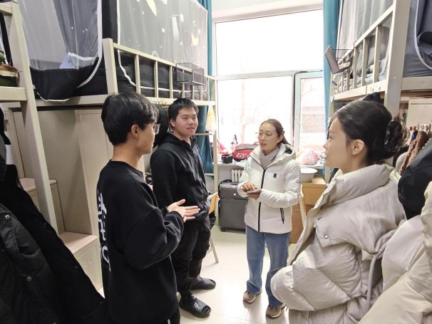 党委副书记张淑艳老师、本科生辅导员李季航老师及兼职辅导员王俊翔、杨新悦一行,深入学生寝室开展新学期走访检查工作。